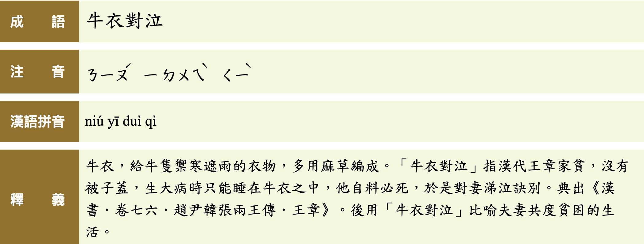 l 牛衣:牛隻禦寒遮雨的覆蓋物。用...