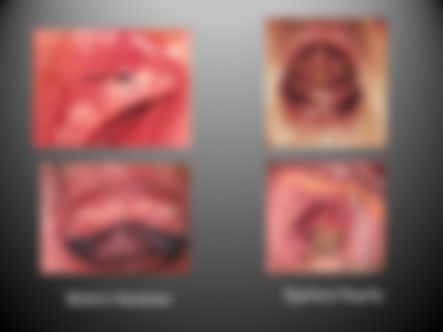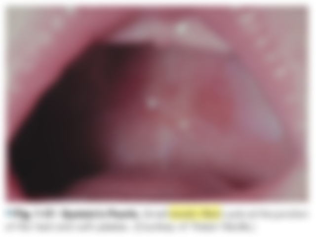 (B)發生在幼兒上腭正中線(midpalatine raphe)的白色點狀硬物稱為Bohn's nodules