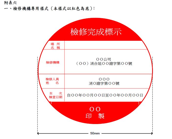 36 受託辦理檢修之檢修機構應依相關規定檢修完成消防安全設備後,依照消防安全設備檢修及 申報辦法規定,應附加檢修完成標示檢修機構專業樣式以何種顏色為底?