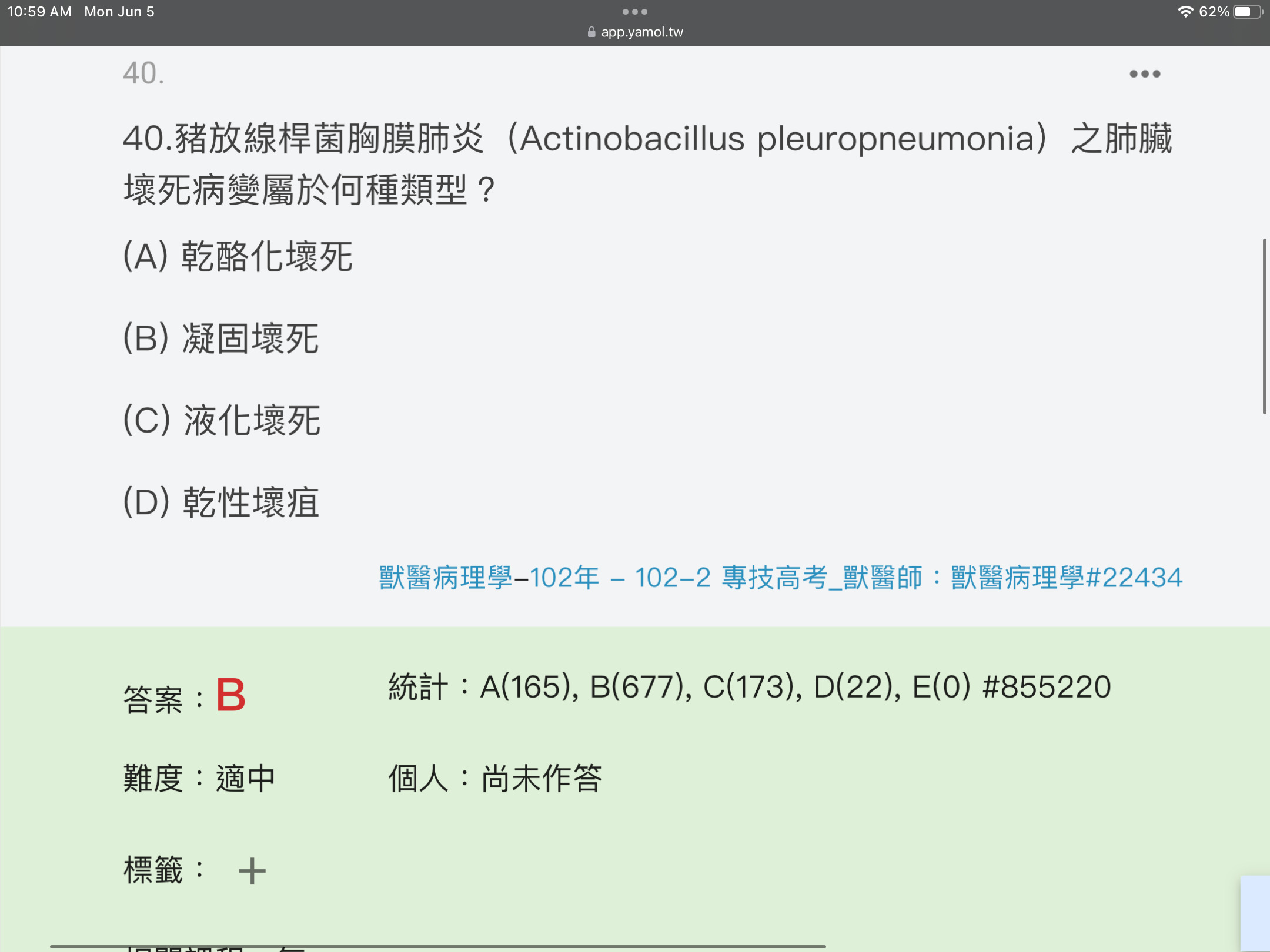 (A)乾酪樣壞死