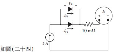 36. 如圖 ( 二十四 ) 所示之電路實驗,定電流源為 5 A,2 個二極體的額定順向電壓