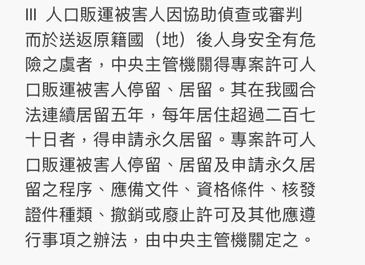 中央勞工主管機關對前項跨國(境)人口販運被害人,得核發聘僱許可,