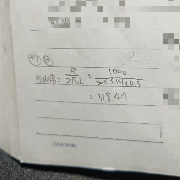 37 如圖所示之 RL 低通濾波器,若 L = 0.5 H,R = 1 kΩ;求-3 dB 截止頻率 fc 約為何?