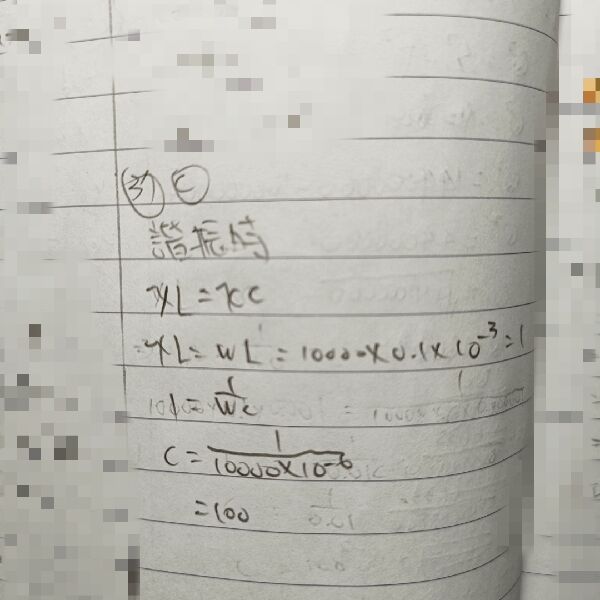 37 RLC 串聯諧振電路的驅動電壓源 vS=2 sin(104 t+45°) V,R=2 kΩ、L=0.1 mH、C=x 微法拉時產生諧 振,x=?