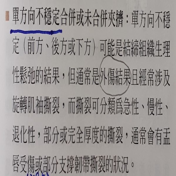 性不穩定多為單方向的不穩定 ④創傷性不穩定多為多方向的不穩定