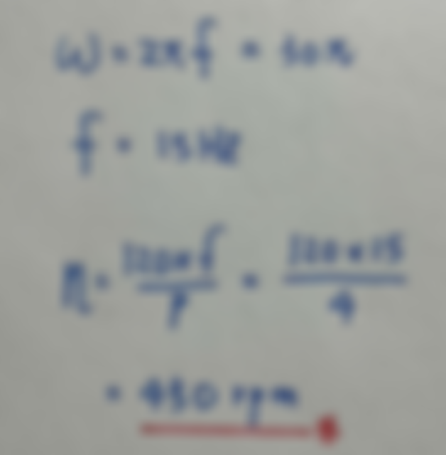 37. 有一部交流三相四極220V,Δ接之同步電動機,當加入三相平衡交流電源,若R-S相間之電壓為220√3sin(30πt),則其轉速為多少?