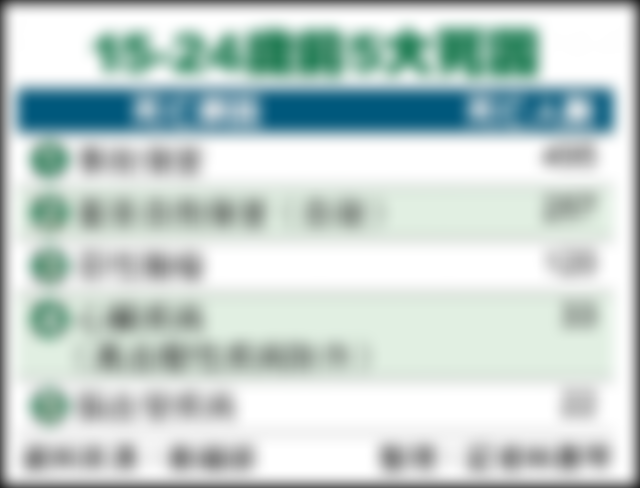 37. 民國109年台灣地區國、高中學生的主要死亡原因是: