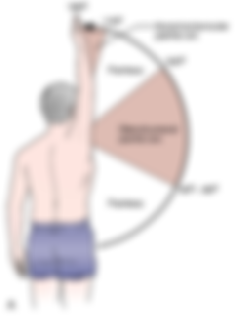 38 下列有關肩關節動作之疼痛弧(painful arc)的敘述,何者正確?