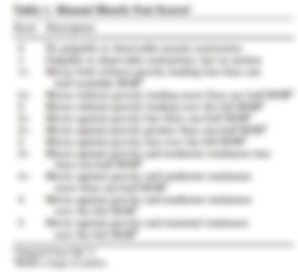 38 有關徒手肌力測試分級(grading) 之敘述,下列何者正確?