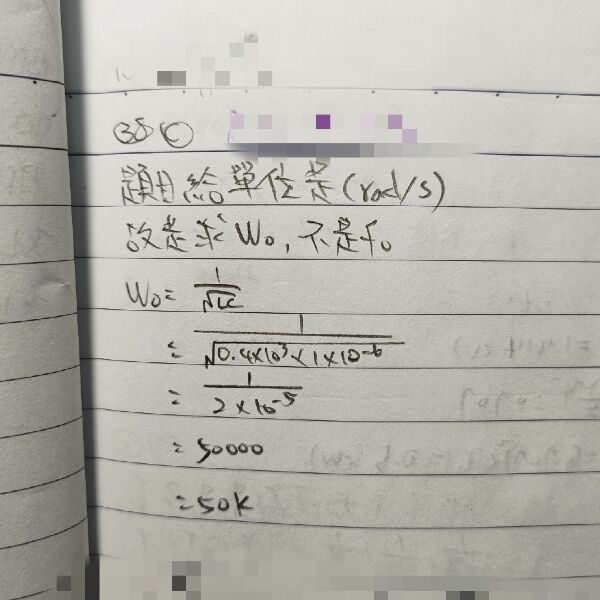 所以實際上問你諧振頻率 fo= 1 /2π * (√LC)