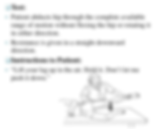 38.以徒手肌力測試檢查髖外展動作之肌力,下列敘述何者正確?
