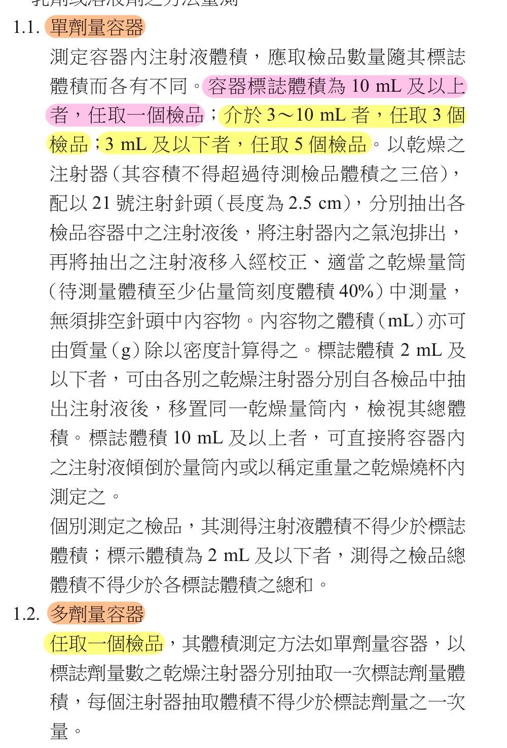 (D)多劑量容器標誌容量≤3 mL者,取≥3個作檢測