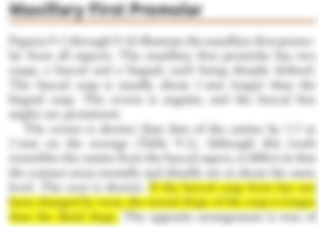 38.從恆牙頰側面觀察,何者的近心咬頭嵴(cusp ridge)長度大於遠心咬頭嵴?