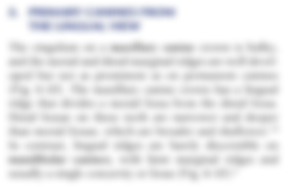 (C)舌面隆凸(cingulum)相對於整個牙冠,較上顎恆犬齒的舌面隆凸不明顯