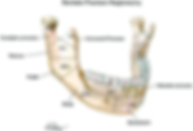 38.考量外力的衝擊及下顎骨的解剖特性,就下顎骨骨折分布區域,下列何者發生的機率最低?