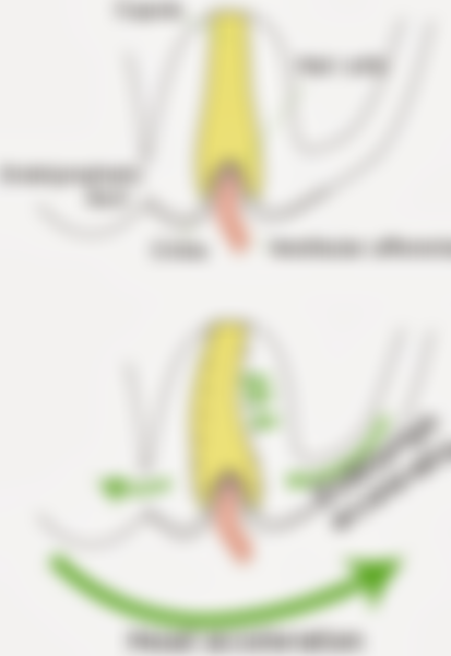 (B)當身體瞬間加速時,所有毛細胞會因彎曲,產生去極化(depolarization)