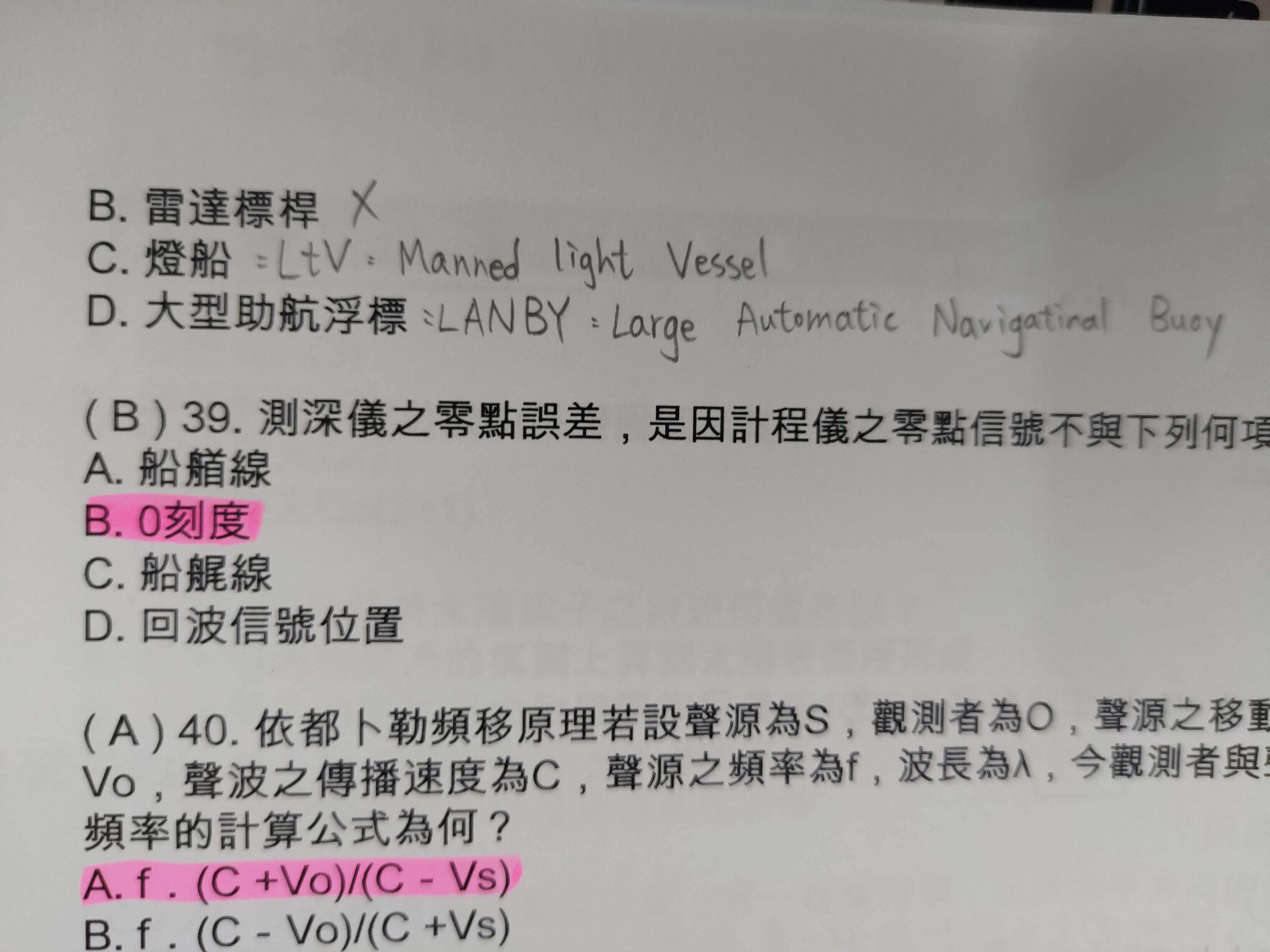 38. 海圖圖例中“LANBY”代表下列何者?