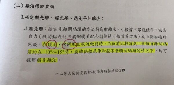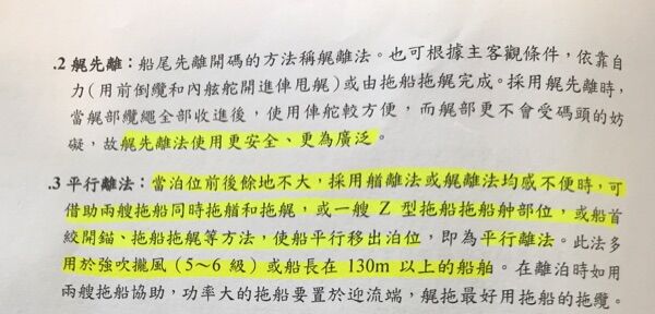38. 船舶離泊時,泊位之前餘地不大,且有吹攏風時,多採用何種方法離泊?