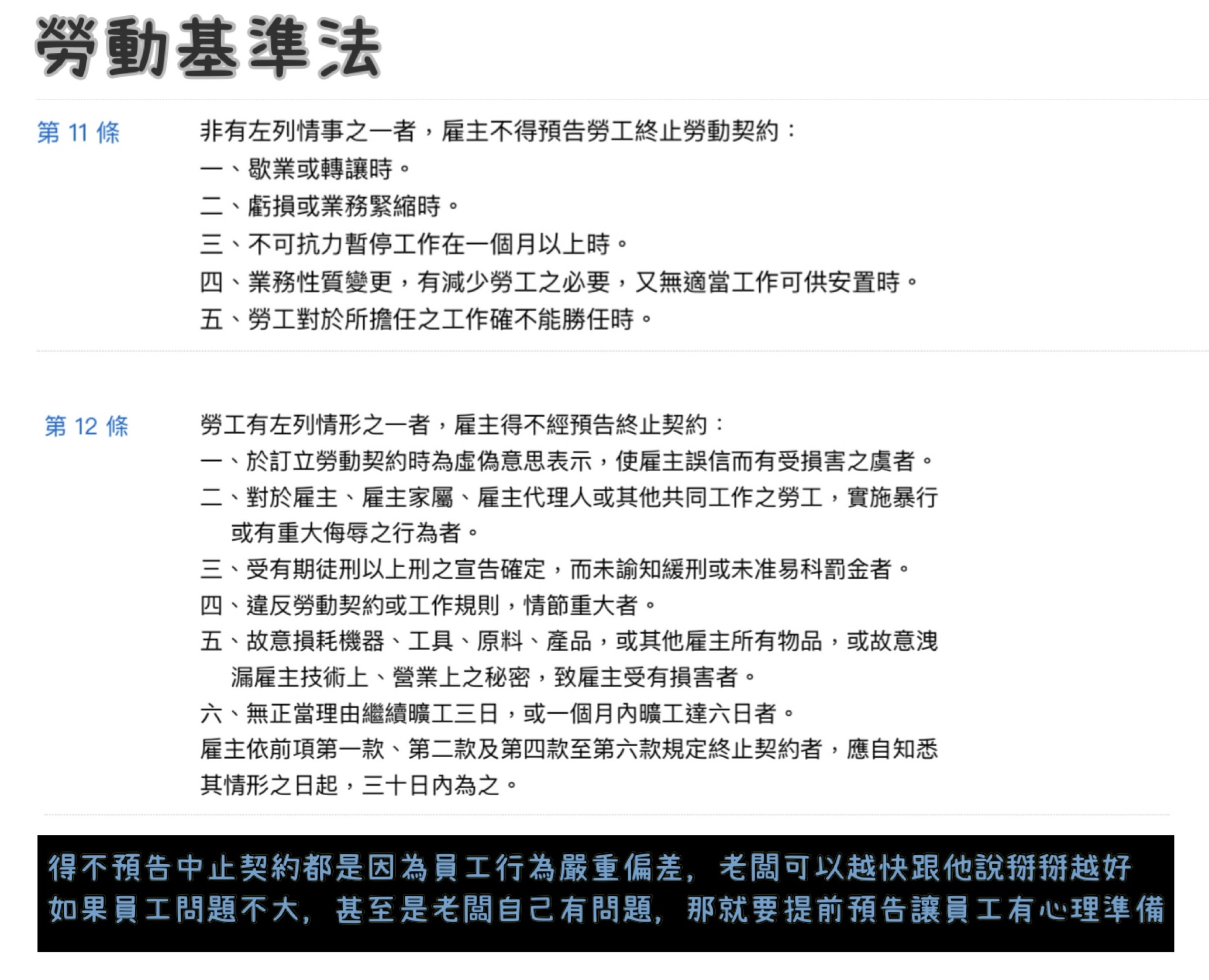第12條 (雇主得不預告即終止契約之情形)