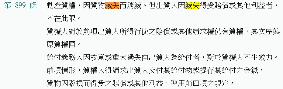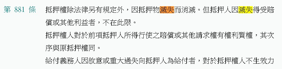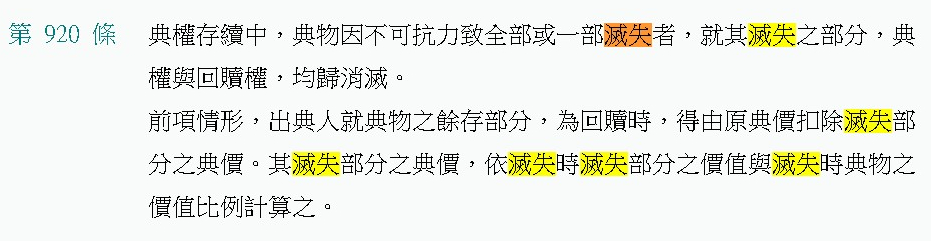 典權存續中,典物因不可抗力致全部或一部滅失者,就其滅失之部分,典權與回贖權,均歸消滅。