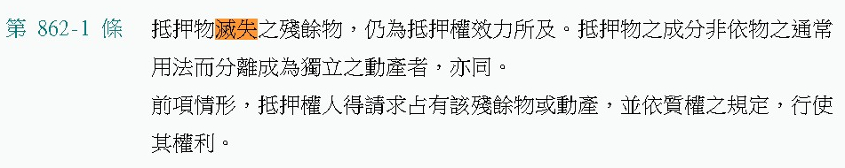 1 典權存續中,典物因不可抗力致全部或一部滅失者,就其滅失之部分,典權與回贖權,均歸消滅。