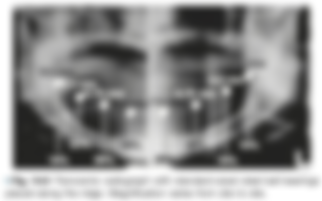 39.使用 panoramic view 攝影片來評估可植牙之骨骼高度時,應注意此片子在部分區域最大的放大率可達多少?