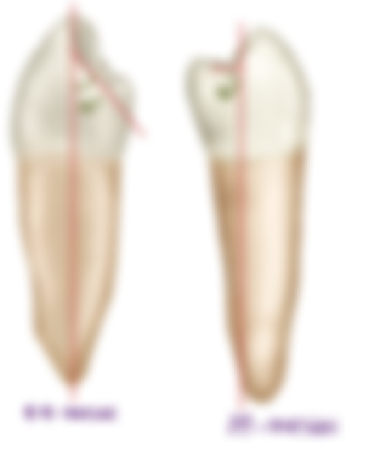 39.從近心觀察,下顎第二小臼齒的近心邊緣嵴(mesial marginal ridge)與牙齒長軸形成的角