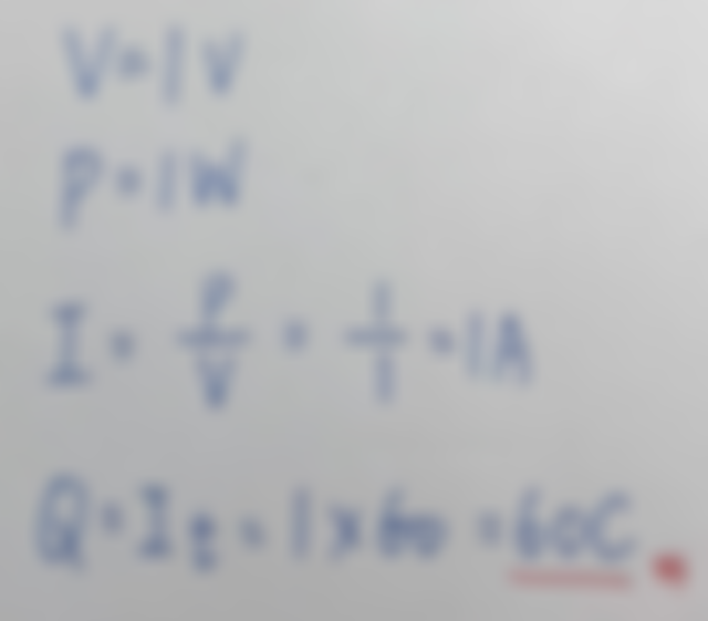 39. 在燈泡兩端施加 1V 的直流電壓,若燈泡消耗的功率為 1W,則燈泡每分鐘流過的電量為?