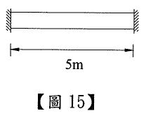 39. 如右【圖15】之均質彈性桿件,長 5 m,斷面積為 300 mm²,彈性模數為 100 GPa,若該桿件熱膨脹係數為 15×10⁻⁶/°C,當溫度上升 20 °C 時,桿件軸向應力絕對值為多少 Mpa?(A) 15(B) 30(C) 45(D) 60