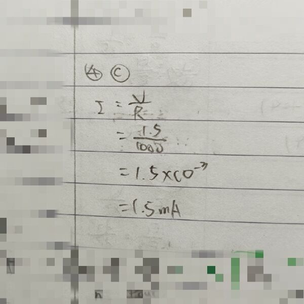 4 以導線將一個 1.5 V 的電池連接到一個 1 kΩ 的電阻,則導線上的電流為下列何者?