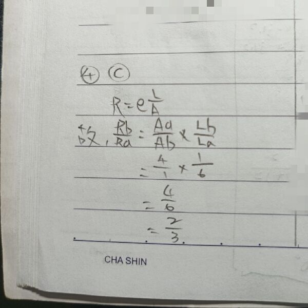 4 以相同材料製作之 a、b 兩導線,若 a 的截面積為 b 的 4 倍,a 的長度為 b 的 6 倍,則 a 導線與 b 導