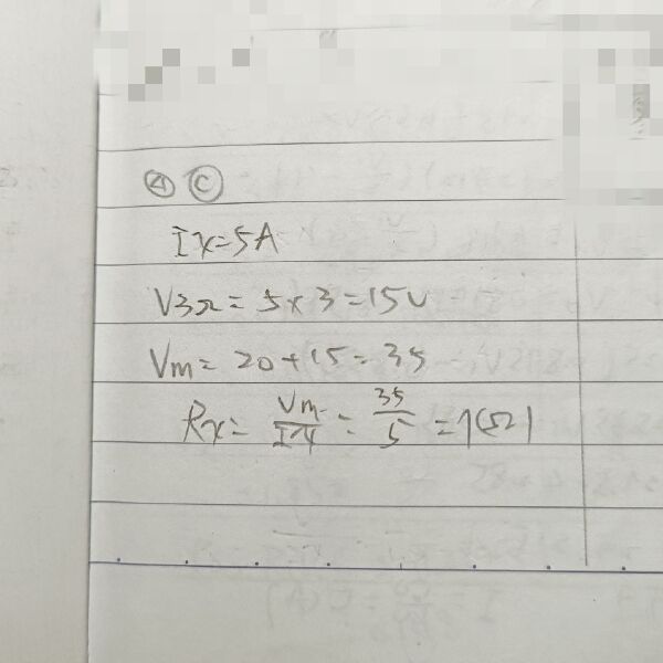 4 如圖所示電阻電路,電流 IX為 5 安培,試求 RX為多少歐姆?