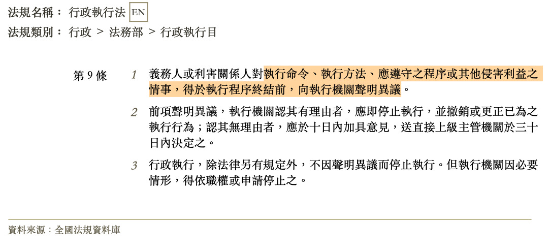 (B)應向執行機關聲明異議