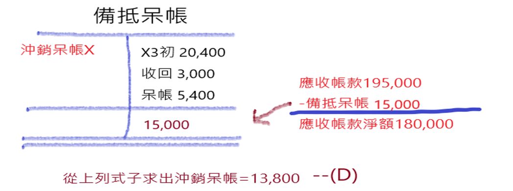 沖銷金額=$20,400+$3,000+$5,400-$15,000=$13,800