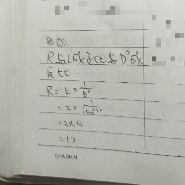 4 使用一種固定材料來製造電阻,將此電阻長度變成3倍,直徑變成1/2倍,則電阻值變為原來的幾倍?