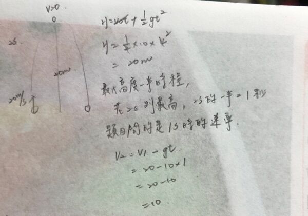 4. 承第1題,到達最大高度一半時程時的速率為多少m/s?