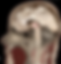 (B).間腦上丘(superior colliculus)以上、前庭核以下