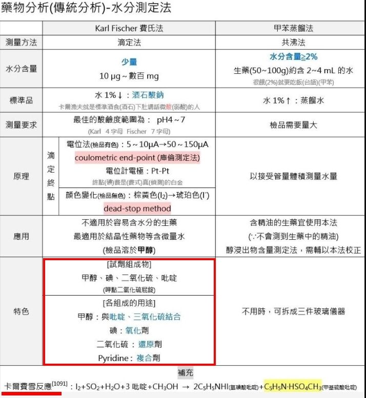 4.以費氏滴定法(Karl Fischer titration)進行水分含量測定時,費氏試劑中何種成分被氧化?