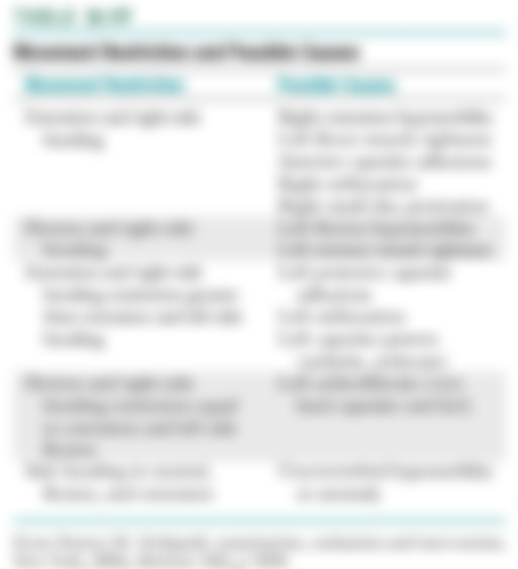 4.當進行頸部活動度檢查時,發現頸椎後仰及左側彎有明顯限制,下列何者最不可能是造成此現象的原因?