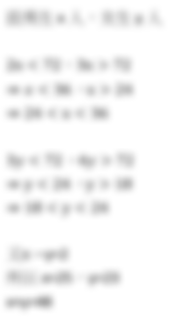 4.花京院老師買了 72 顆麻糬分給學生。若只分給男生,每個男生各拿兩顆還有 剩,但每個男生各拿三顆就不夠了。若只分給女生,每個女生各拿三顆還有剩, 但每個女生各拿四顆就不夠了。已知男生的人數比女生多兩人,請問全班共有 多少人?