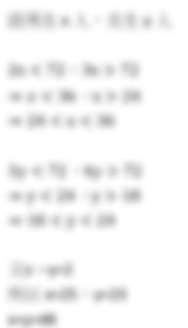 男生分兩顆還有剩,代表72/2=36,男生的人數小於36人;分三顆不夠,72/3=24,代表男生人數必定大於24人。依上述可寫成36>男生人數>24。