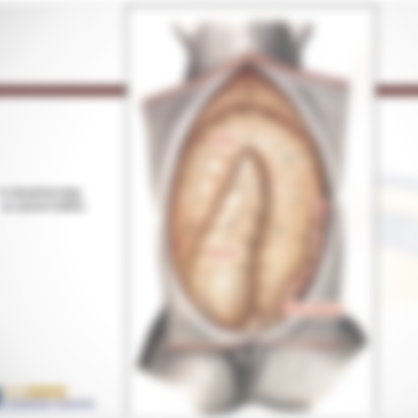 4.馬腹正中線切開後,應該會看到的腹腔器官為下列何項?(此器官在腹腔手術時通常作為臟