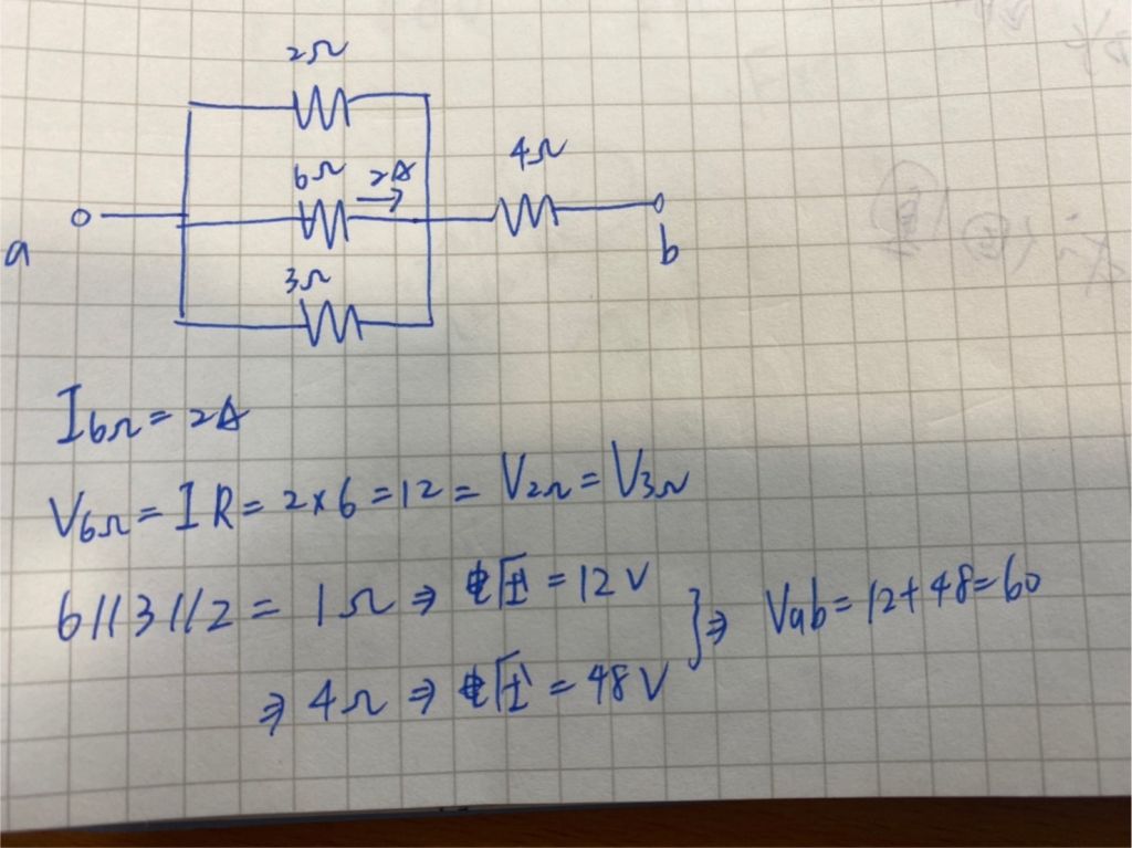 4. 如下圖所示之電路中,若電流表之讀值為2A,則