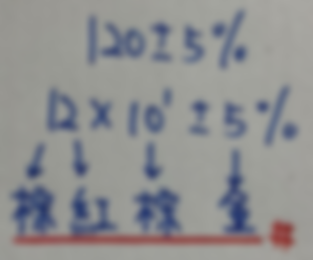 4. 電阻值若為 120±5%Ω,則其色碼順序為: