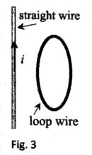 4. A long straight wire is in the plane of a loop wire, as shown in Fig. 3. The straight wire initially carries no current. While the current i is smoothly increasing from zero, the current in the rectangle loop is