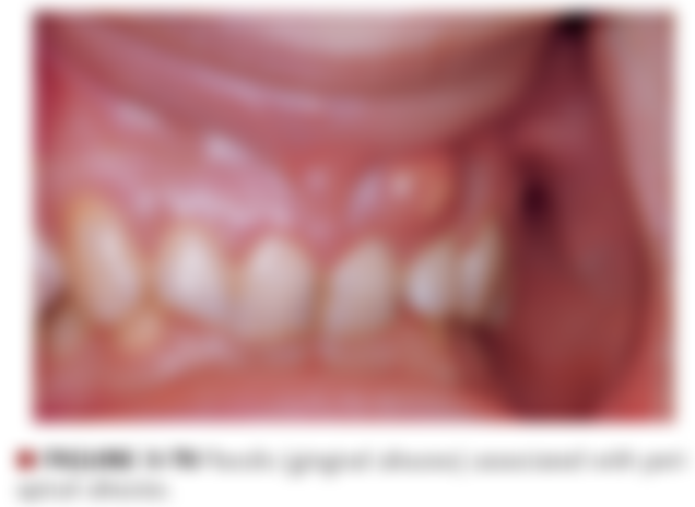 4.15歲孩童上顎唇側牙齦出現了一個紅色軟性的齦膿腫(parulis),在X光檢查中最可能看見下列何者?