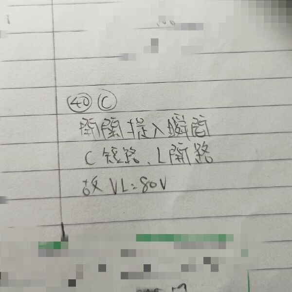 40 如下圖,當開關 S 投入瞬間,電壓VL 為多少伏特(V)?