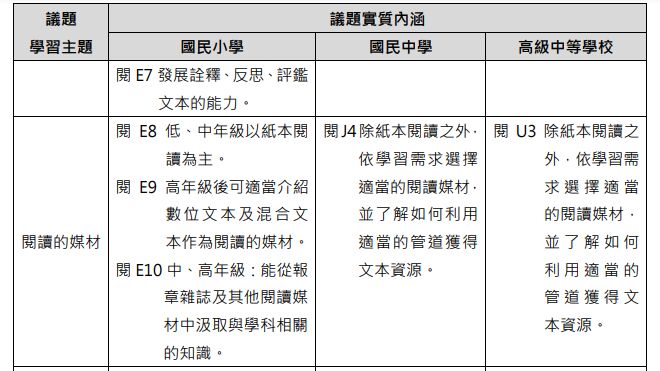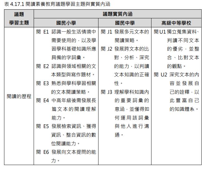 40.十二年國教新課綱共有十九項融入議題。其中,「閱讀素養」的學習主題,