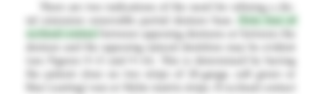 鈎靠(rest)及間接固位體(indirect retainer) ②可撤式局部義齒與自然牙形成之咬合平面 (occlusal plane) ③殘嵴(residual ridge)和義齒基底(denture base)間的關係 ④牙鈎 (clasp)和支柱牙間的關係