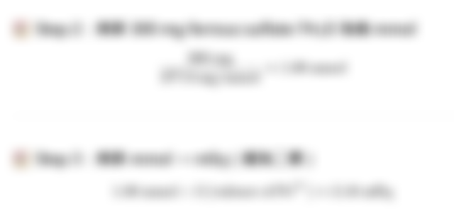 又Fe在此為二價,乘上當量2→1.08mmol=2.16mEq